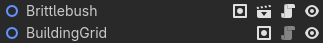 What’s going on here? Consider how you can create custom nodes. Either you create a scene file and instantiate it, or you define a node purely by script. This code handles both cases. For script-based nodes, there are different ways to retrieve a built-in class (like Area2D) and a custom one, defined with class_name at the top of the script. Consider the two nodes in the screenshot below as an example. “Brittlebush” is a scene instance (as denoted by the clapboard) icon. “BuildingGrid”, on the other hand, is only defined by a script with a custom class (hence the grayed-out script icon).